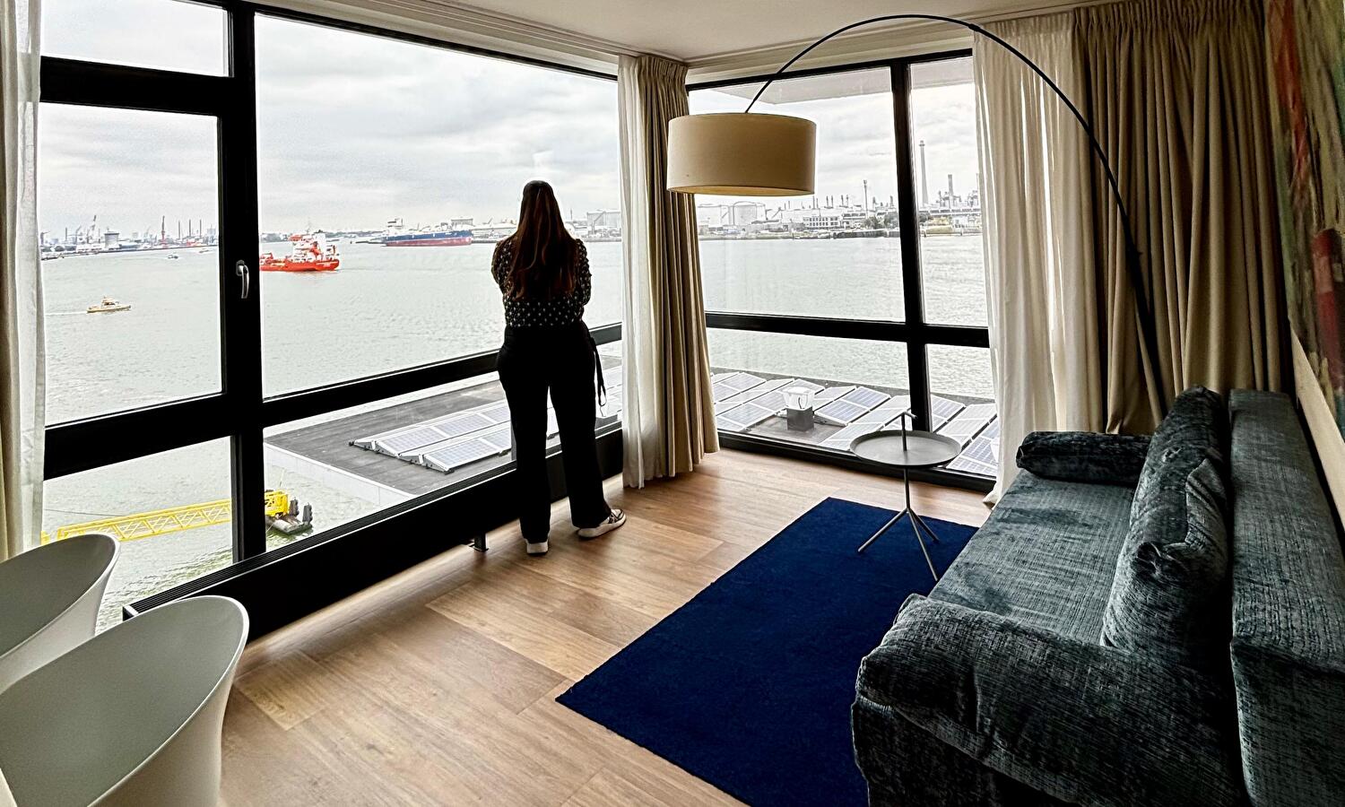 Double, nautical-themed suite with a breathtaking view over the Nieuwe Maas.